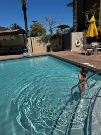 Today we slept in, had breakfast at the hotel, and Mika and I spent hours in the pool and hot tub. We even got Christy to come down and eat lunch with us poolside.