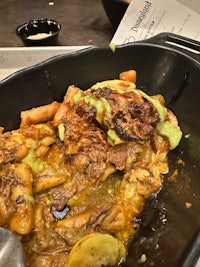 When we entered the food bay, I was pleased to be able to walk right in. All of the food and decorum is Star Wars themed. I ordered Batuuan Beef and Crispy Topato Stir-fry. Which is