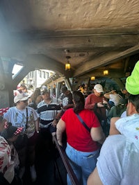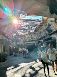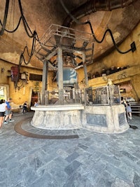 As we entered the Star Wars section, it was impressive with the landscape changing and staff dressed in characters from the movies. The first ride we got in line for was Star Wars Rise of the Resistance. The sign stated a 180-minute wait, but we were only in line for about 100 minutes. During the wait, you are taken through a cave-like queue with interesting props from the Star Wars movies; some you can even touch. There was even a water fountain to refill water bottles and immense fans to help cool you off.
