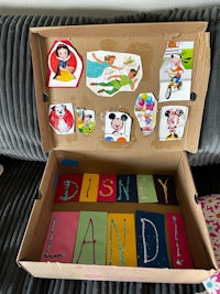 Next was how to tell Mika about the trip. We wanted not to be a surprise, but we also needed to say to her so we could make arrangements to be ready to go. We devised the idea to make a wrapped present that Mika would unwrap. Christy did a great job crafting a box that included cutouts of Disney characters and the words Disneyland. The plan went well, and she was excited and surprised when she opened the gift.
