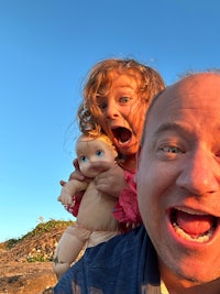 Mika always wants to play and has named the sand fleas “hoppers” and demands to be carried across the section of the beach where they are prevalent.